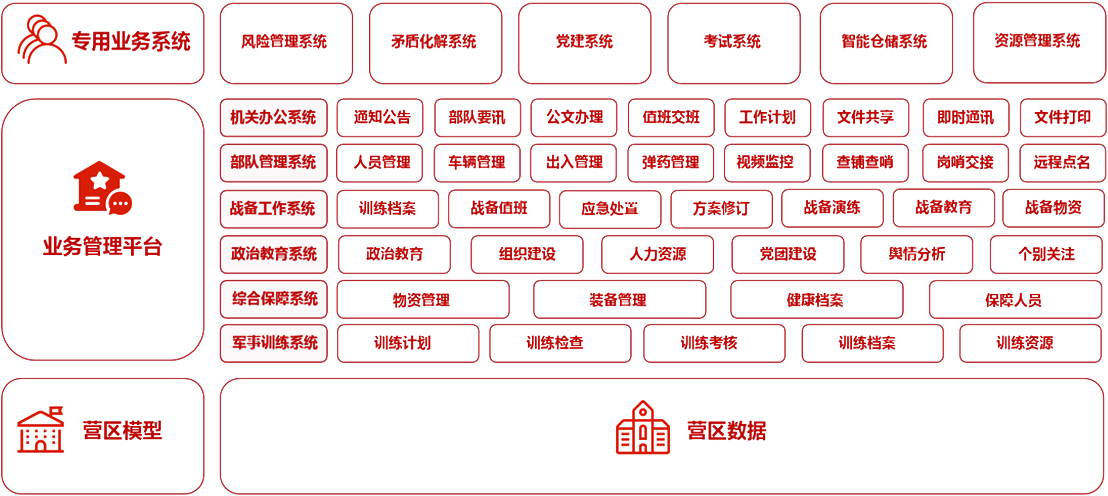 軍營專用業(yè)務(wù)系統(tǒng)包含軍營風(fēng)險管理系統(tǒng)和矛盾化解系統(tǒng)。